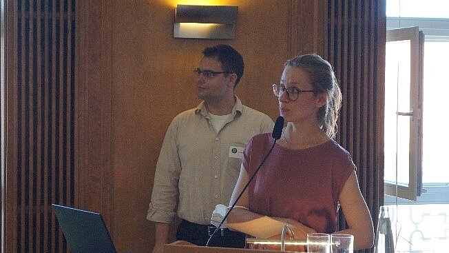 Wieder im Einstein-Saal wurde es hitzig – nicht nur wegen der sommerlichen Temperaturen. Das Panel zum Thema „Engineered Humanities: Rolle, Reputation und Rezeption von Forschungssoftwareentwicklung in den Digital Humanities“ brachte bekannte Gesichter der Digital Humanities-Community auf die Bühne und gemeinsam ins intensive Gespräch, das von Dr. Frederike Neuber (BBAW, TELOTA) moderiert wurde: Dr. Eckhart Arnold (Bayerische Akademie der Wissenschaften) unterstrich die Vorteile von Forschungssoftware als Industrieprodukt, während Jun.-Prof. Dr. Ulrike Henny-Krahmer (Universität Rostock) den Schwerpunkt ihres Impulses auf die Forschungsleistung hinter der Entwicklung von Software legte und für mehr akademische Würdigung dieser Art von (Publikations-)Leistung warb. Dr. Lisa Dieckmann (Universität zu Köln/NFDI4Culture) setzte sich ebenfalls für mehr Sichtbarkeit der Arbeit von Research Software Engineers ein und betonte in diesem Zusammenhang die Wichtigkeit der Qualitätssicherung von Softwareprodukten, wie sie beispielsweise Rezensionen leisten könnten. Die Perspektive einer Fördereinrichtung auf die Thematik vertrat Dr. Matthias Katerbow (Deutsche Forschungsgemeinschaft), der über die Finanzierungsmöglichkeiten von Software sprach und dabei sowohl die Dringlichkeit als auch die Schwierigkeit bei der Selektion von Software für Förderung ansprach. Auf dem Podium und im Publikum zeigten sich teils gegensätzliche Meinungen zu Fragen wie etwa, ob kommerzielle Softwareprodukte im Endeffekt langlebigere Perspektiven haben, als durch projekthafte Forschungsförderung finanzierte Software. Für viel Diskussion sorgte auch die Thematik der Anerkennung von Softwareentwicklung als wissenschaftliche Leistung und die Frage, welche Kriterien dafür erfüllt sein müssen.