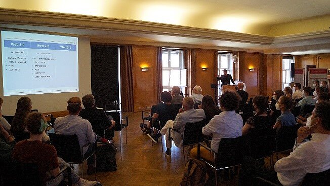 Prof. Dr. Dr. h. c. mult. Martin Grötschel (ehem. Präsident der BBAW, Gründungsmitglied und langjähriger Sprecher der TELOTA-Steuerungsgruppe) erläuterte in seinem Vortrag „TELOTA: Woher, Wohin?“ zunächst einige seiner Grundüberzeugungen zur Rolle der Digitalisierung und dem damit verbundenen Wandel der Forschungskultur und lieferte damit ein starkes Plädoyer für die Digital Humanities (DH), Open Access und Open Science. In seinem historischen Abriss der TELOTA-Entstehung schilderte Grötschel die enge Verbindung zwischen der damals ebenfalls ins Leben gerufenen Arbeitsgruppe „Elektronisches Publizieren“ und der TELOTA-Gründung. Die Entstehung des „TELOTA-Projekts“ beschrieb er rückblickend als „eine Kombination von Unkenntnis, Missverständnissen und dem Versuch gezielten Handelns.“ So sei sich die BBAW 2001 zwar bewusst gewesen, dass im Bereich Digitalisierung und Forschung sowie im digitalen Publizieren in der Zukunft einiges zu tun sei, jedoch steckten die Überlegungen wie damals überall noch in den Kinderschuhen und haben sich erst in den Folgejahren zu konkreten Plänen entwickelt. Darüber hinaus blickte der Ex-Präsident der BBAW auch in die Zukunft und merkte mit der nötigen Kritik an, dass Geisteswissenschaften und Informatik noch oft das Verständnis füreinander fehle. Die Rolle TELOTAs in den Digital Humanities bezeichnete er rückblickend als „über die Akademien hinaus stilbildend“ und rief dazu auf, die gute Arbeit in Zukunft mit dem gleichen Elan fortzuführen.