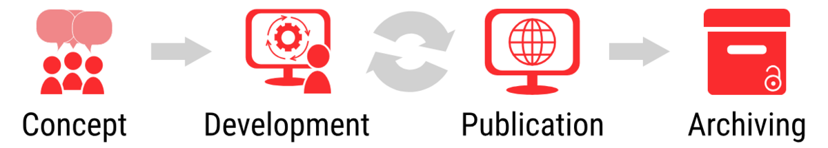 A central task of TELOTA – DH is to support the projects of the Academy in their digital research. The TELOTA team accompanies the projects in all phases of the digital research process: from conception, processing and publication to archiving the data. Intensive collaboration with the scholars is at the focus of this process.