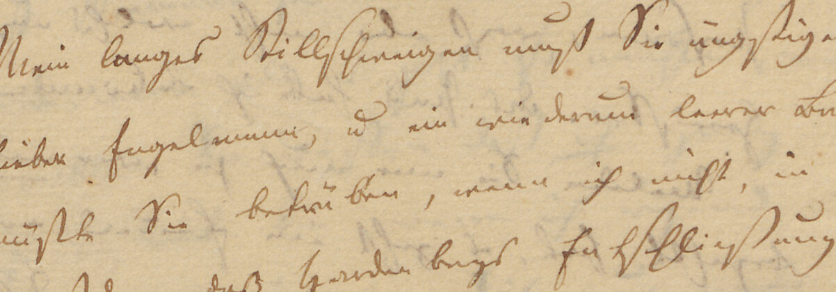 Zeit ihres Lebens baute Helmina von Chézy ein großes Korrespondenznetzwerk zu Schriftsteller:innen, Politiker:innen, Künstler:innen und Verlegern auf. Mit ihren Briefen pflegte sie Freundschaften, warb bei Politikern um Unterstützung oder verhandelte mit Verlegern – sie bildeten die Basis ihrer Existenzsicherung. Darüber hinaus eröffnen die Briefe eine weibliche Perspektive auf das literarische Leben um 1800. Sie geben Einblick in das Selbstverständnis einer Frau, die sich in einer männlich dominierten Kulturszene behaupten musste: als alleinerziehende Mutter, berufstätige Intellektuelle und Künstlerin. Die Briefe Helmina von Chézys bilden mengenmäßig den Schwerpunkt ihres umfangreichen Nachlasses, der nach ihrem Tod zum Teil in die Sammlung Varnhagen aufgenommen wurde, während ein weiterer Teil 1896 über den Autografenhandel zunächst an die Berliner Literatur-Archiv-Gesellschaft gelangte und schließlich 1944 in den Besitz der Preußischen Akademie der Wissenschaften überging. Der heute im Akademiearchiv verwahrte Nachlass umfasst laut Findbuch 1.204 Verzeichniseinheiten mit insgesamt knapp 12.000 Blatt. Die Korrespondenz mit rund 5.935 Blatt – davon 3.337 Blatt Eingangsschreiben und 2.598 Blatt Ausgangsschreiben – macht neben biographischen und geschäftlichen Unterlagen, Notizbüchern, Werkmanuskripten und den Nachlässen ihrer Familienmitglieder etwa die Hälfte des Bestands aus. Dies entspricht rund 2.000 an Chézy gerichteten und knapp 1.400 von ihr verfassten Briefen. Besonders hervorzuheben ist der Anteil an Frauenkorrespondenz: 520 Briefe von insgesamt 136 Frauen sowie 125 Briefe an 40 Frauen dokumentieren die Vernetzung Chézys mit weiblichen Intellektuellen ihrer Zeit und unterstreichen die geschlechtergeschichtliche Relevanz ihres Briefnachlasses.