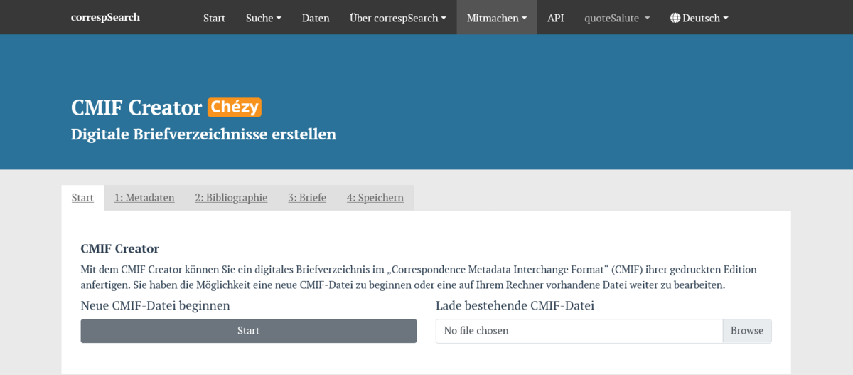 Zur systematischen Erfassung erhält der Mitarbeiter eine Eingabemaske, die von TELOTA bereitgestellt wird und auf dem CMIF-Creator aufbaut, der eine normierte Erfassung von Briefmetadaten ermöglicht. Neben der Aufnahme der Briefe aus dem Akademiearchiv wird zudem eine Bibliografie bereits in Editionen erschienener Briefe (auch aus anderen Archiven) erarbeitet. Die erfassten Daten werden anschließend in den Webservice correspSearch – Briefeditionen vernetzen eingespeist. Darüber hinaus fließen sämtliche erfassten Angaben in das Findbuch der Akademie zurück, sodass Nutzer:innen der BBAW-Services unmittelbar von den Ergebnissen der Erschließungsarbeit profitieren.